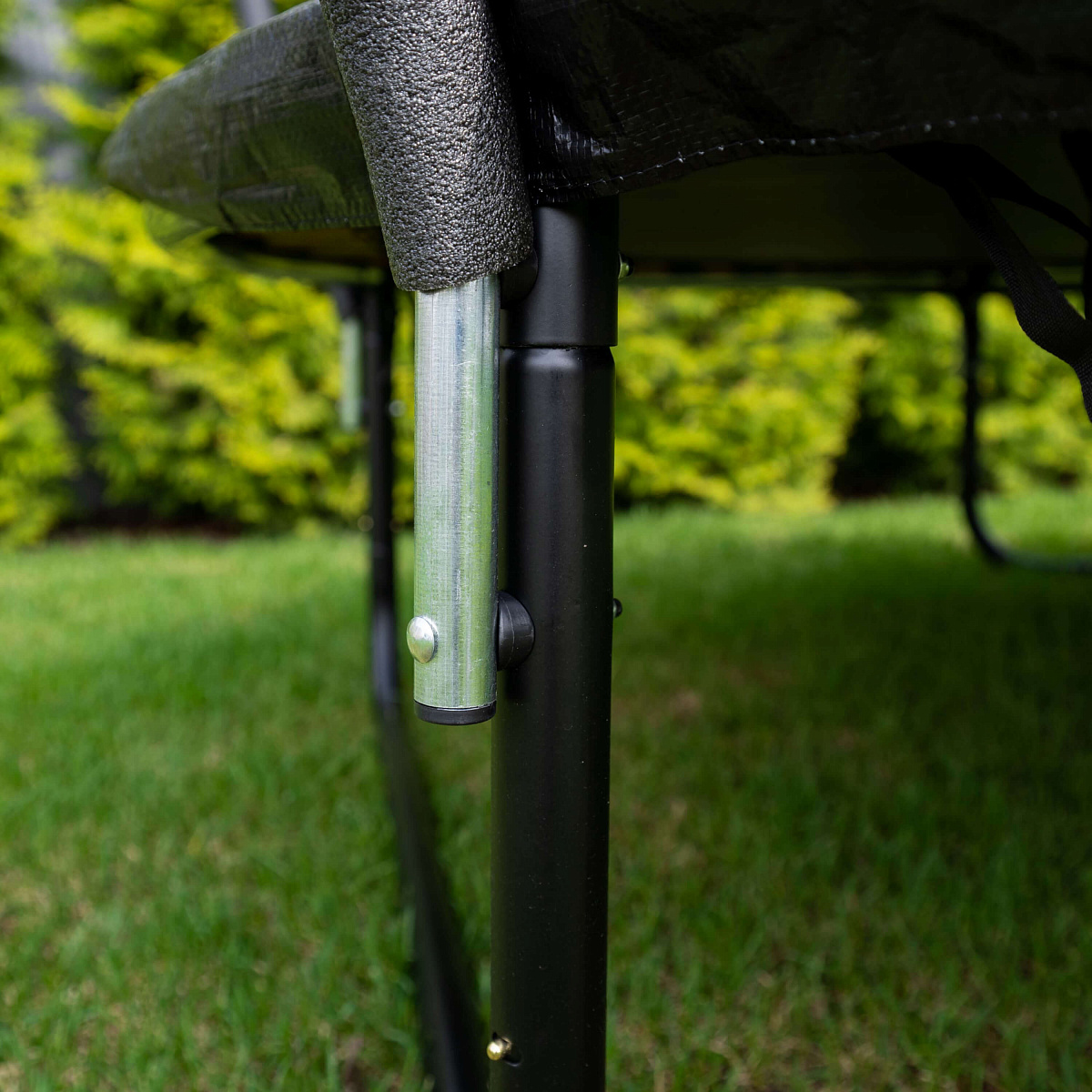 Прочная высокая сетка, тщательно натянутое упругое полотно, закрытые пружины гарантируют максимальную безопасность во время джампинга, качественные материалы обеспечивают долговечность, износостойкость и надежность конструкции.