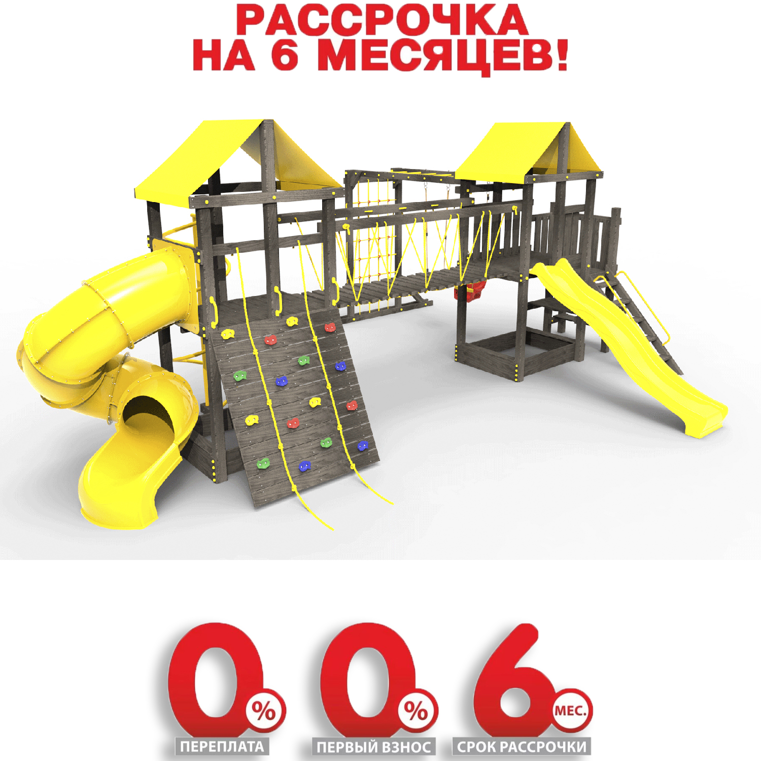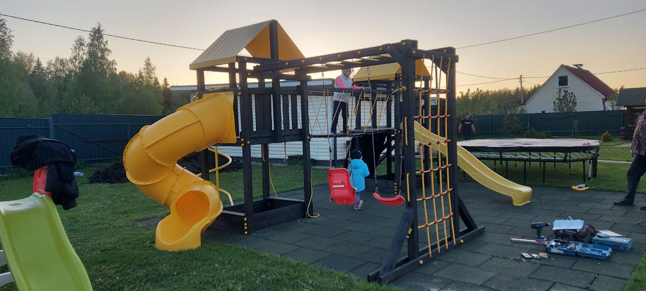 Обращаем Ваше внимание, что фактический цвет детской площадки может отличаться от представленных фото на сайте. Специфика окраски нетоксичными пропитками и красителями допускает отклонения в цветовой гамме отгружаемых изделий. Также обратите внимание, что фактический цвет может отличаться из-за цветопередачи устройства на котором Вы смотрите фото.