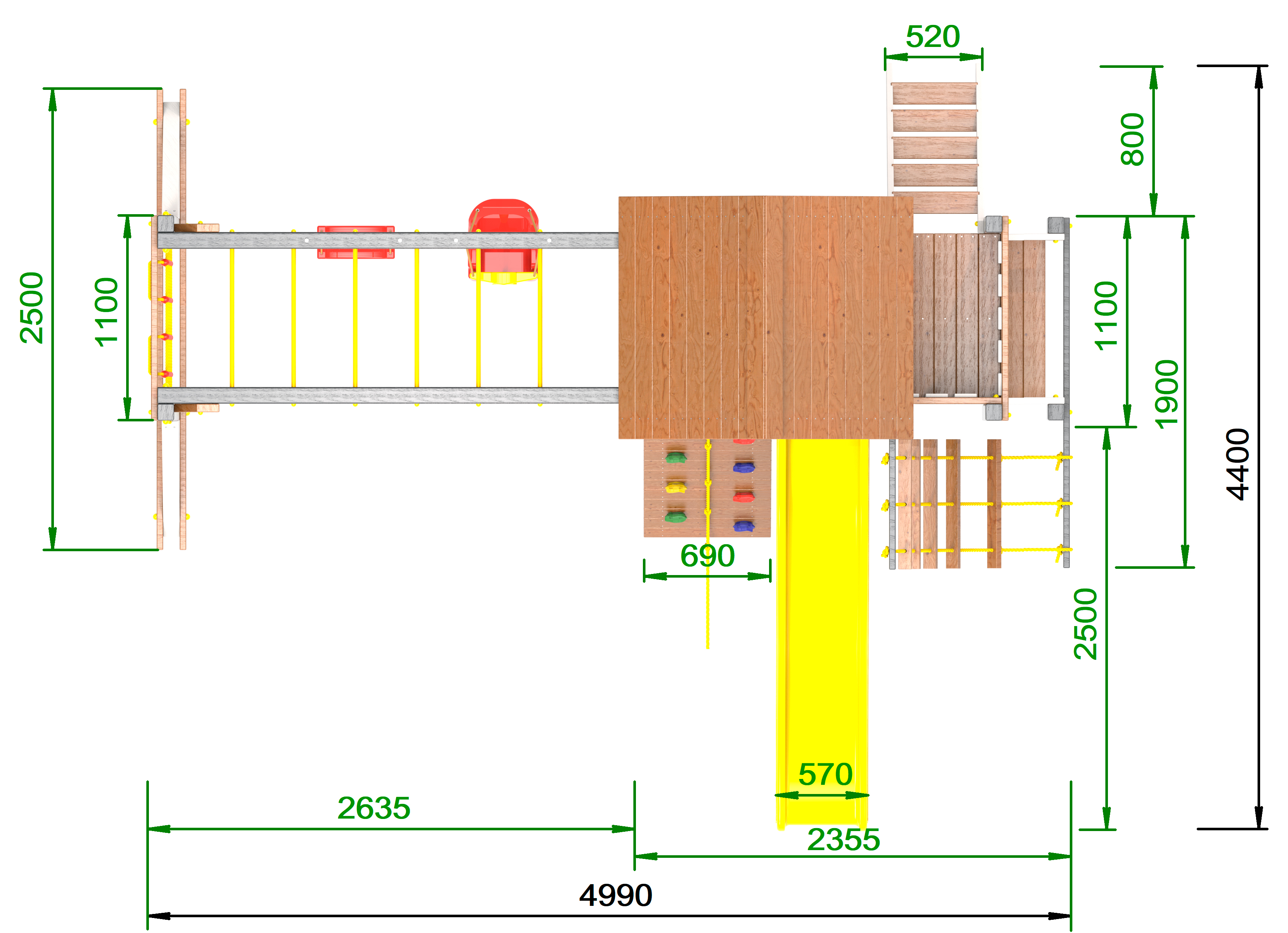 Обращаем Ваше внимание, что фактический цвет детской площадки может отличаться от представленных фото на сайте. Специфика окраски нетоксичными пропитками и красителями допускает отклонения в цветовой гамме отгружаемых изделий. Также обратите внимание, что фактический цвет может отличаться из-за цветопередачи устройства на котором Вы смотрите фото.